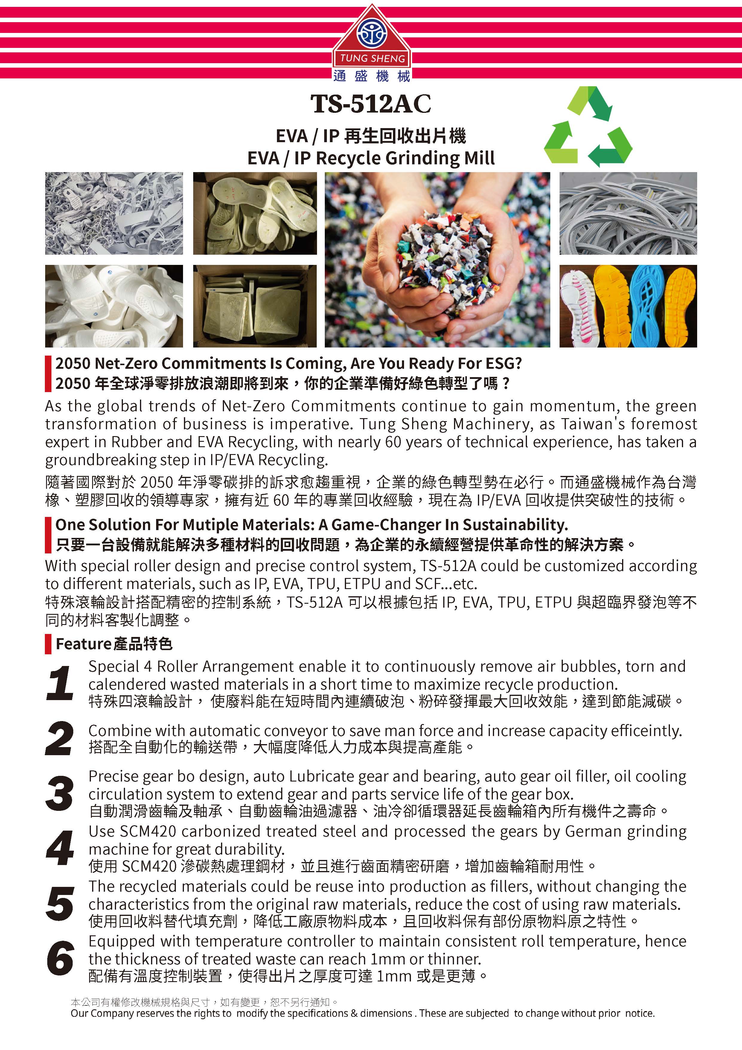 • TS-512AC EVA / IP Recycle Grinding Mill
